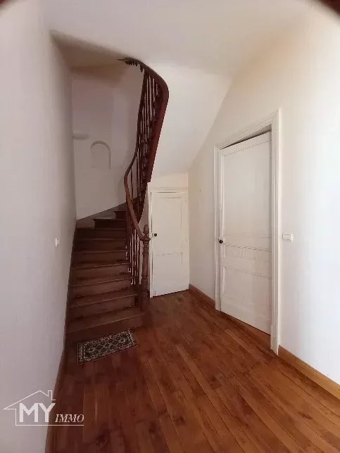 D'une surface habitable de plus de 176m² sur trois niveaux, elle vous accueille avec une vaste entrée et son escalier typique des maisons du début XXème, un salon avec cheminée comportant une belle hauteur sous plafond et son plancher bois.